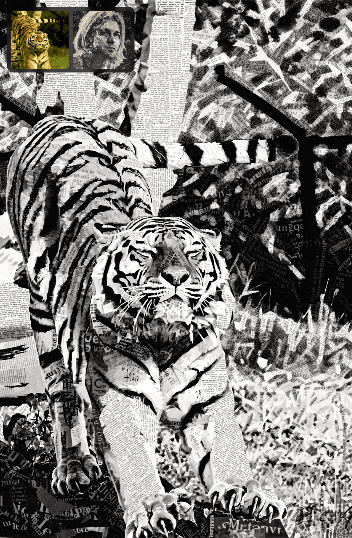 Create a portrait of the animal from image 1 in the same pose, illustrated in the art style of image 2. Match the colors, textures, and overall aesthetic of image 2.